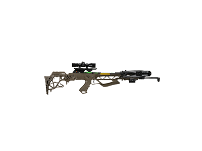 Take your hunt to the next level with the RutHunter 400X. With blistering speeds up to 400 FPS and 128 lbs. of kinetic energy, the RutHunter 400X is both fast and hard hitting. This ready to hunt crossbow comes with a 4x32 dual illuminated scope, 3 Xit-20 carbon bolts with clip on nocks, 3 bolt quiver, rope cocking device, and assembly tools.